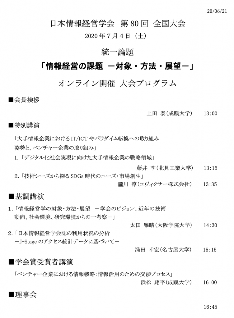 → 日本情報経営学会 第80回全国大会(オンライン) Webサイト (外部サイトへのリンク)