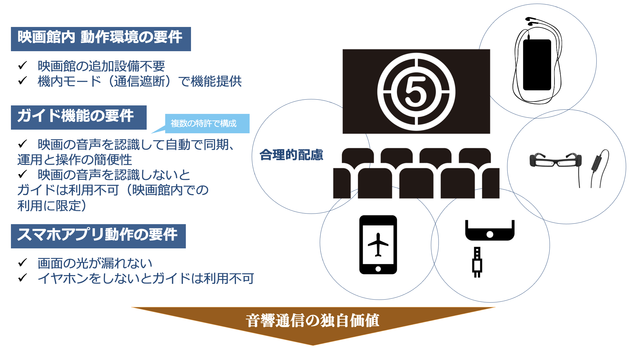 映画館内での音響同期システム、バリアフリー上映支援アプリ「HELLO! MOVIE」の技術要件