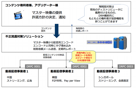 *DRPC(許諾コード方式)とは、電通が1997年に考案した方式で、国際電気標準会議(IEC)で2008年6月に標準化されている技術規格(IEC62227)です。